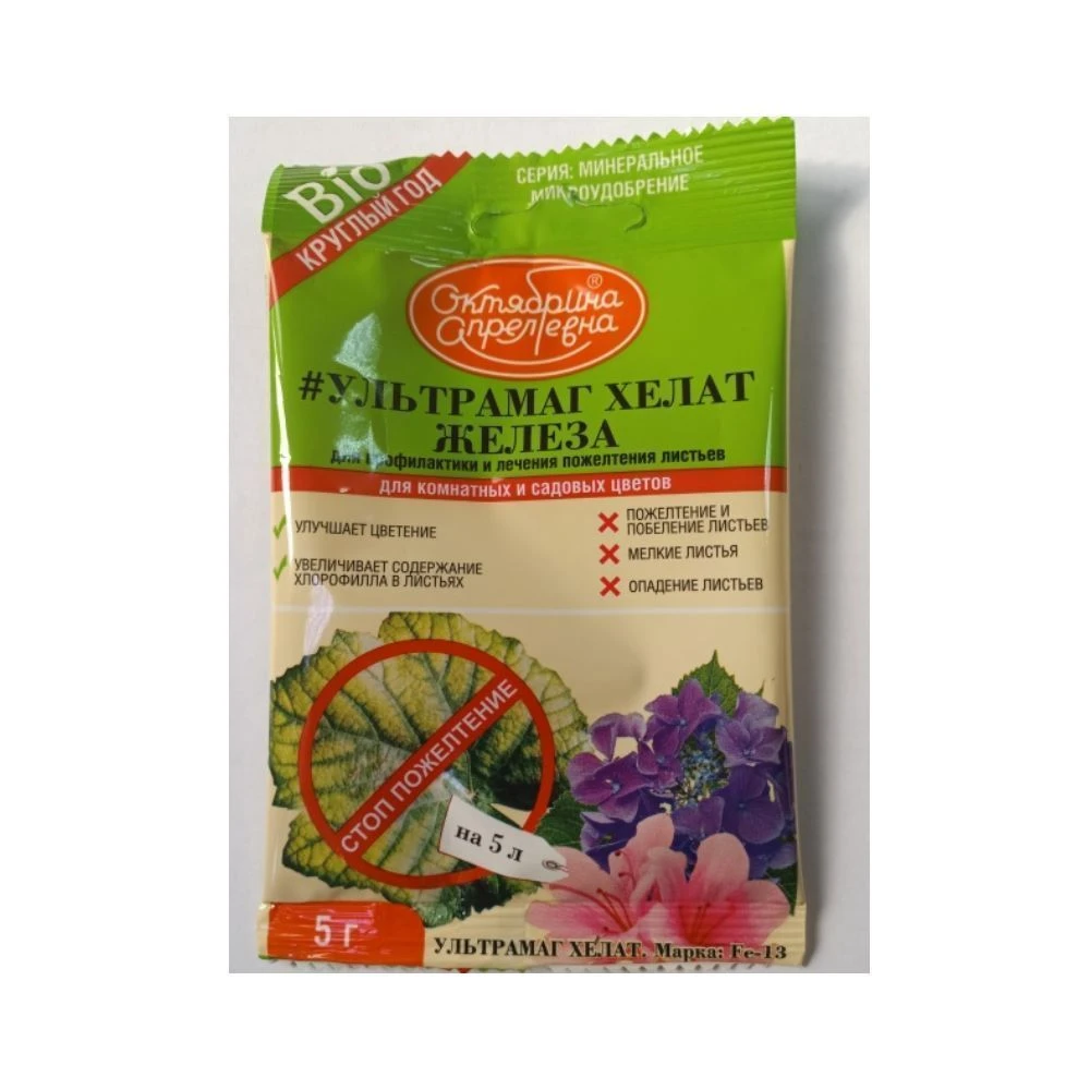 Удобрение Ультрамаг хелат железа для комнатных и садовых цветов 5г 1/50 (Щ/А)