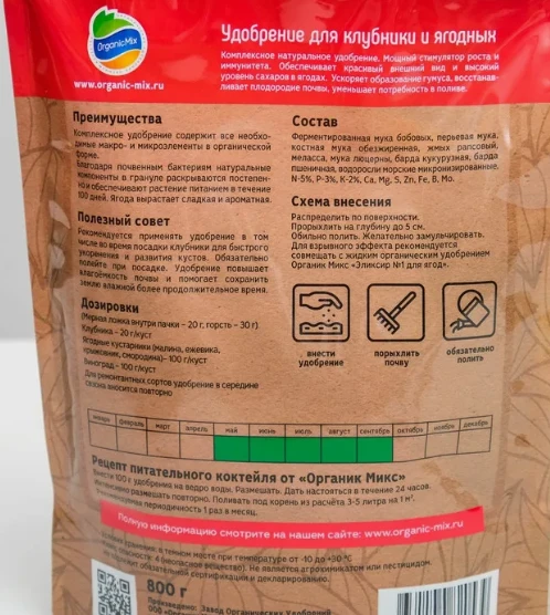 Удобрение ОрганикМикс для клубники и ягодных 800г 1/10 (Э/Ф)