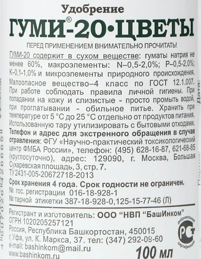 ОЖЗ Гуми-20 Цветы – органоминеральное удобрение с микроэлементами.