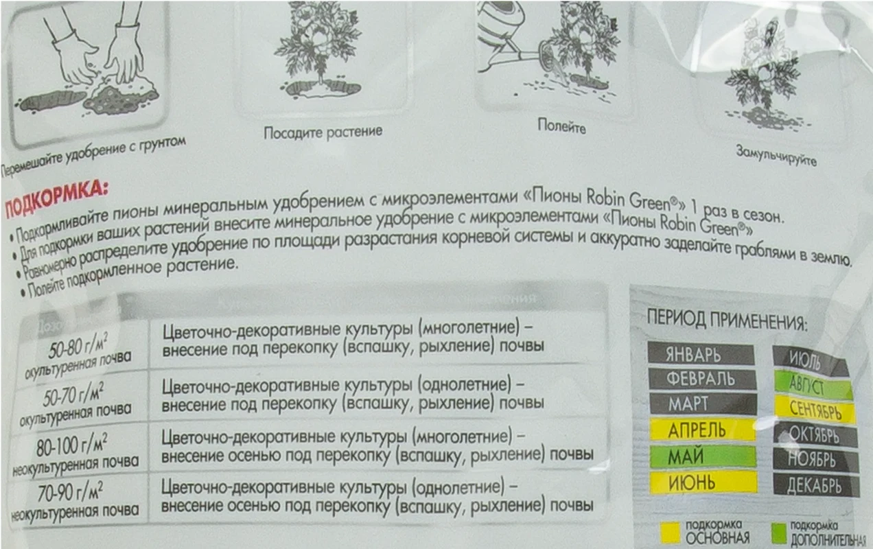 Удобрение сухое Робин Грин минеральное гранулированное Пионы дойпак 1кг.