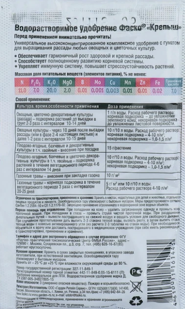 Количество товара в упаковке 50 ШтрихКод 4610011160455 Назначение удобрения или грунта Для рассады Торговая марка Крепыш Форма выпуска Гранулы Вид удобрения Минеральные -