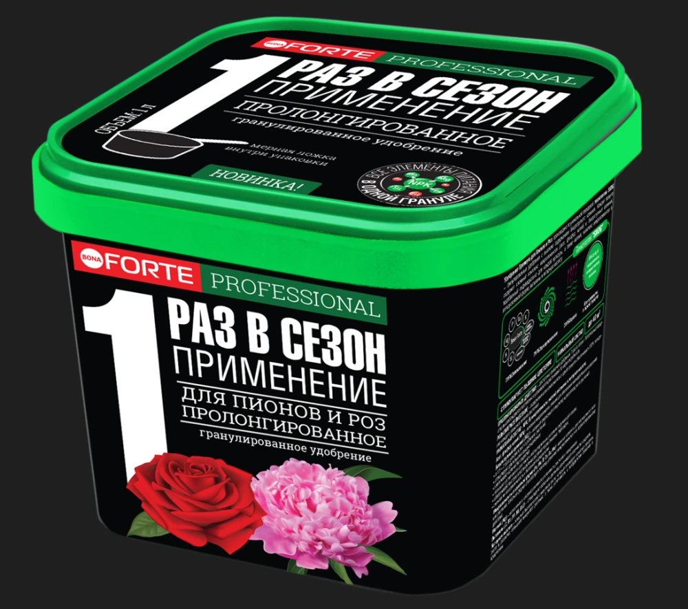 Гранулированное пролонгированное премиум удобрение для пионов и роз плетистых, парковых, миниатюрных, штамбовых, клумбовых.