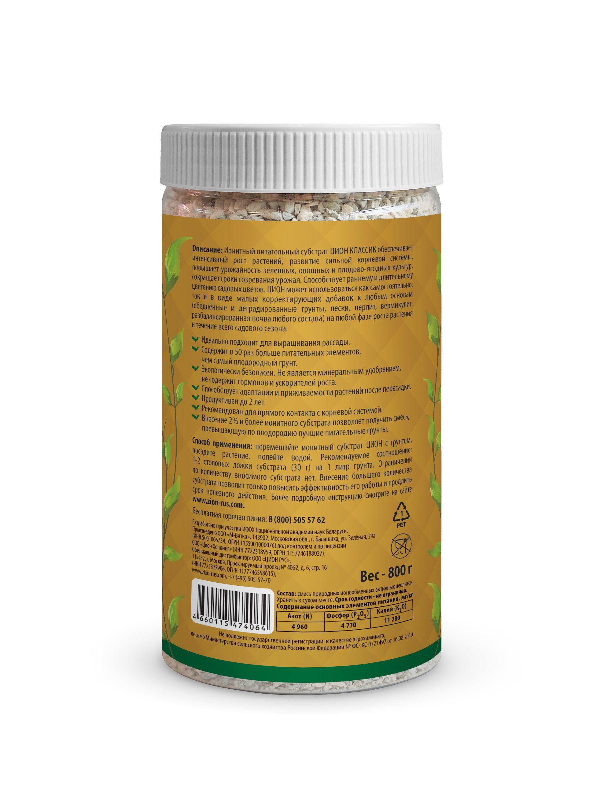 Удобрение ЦИОН классик ионитный субстрат 800г 1/18