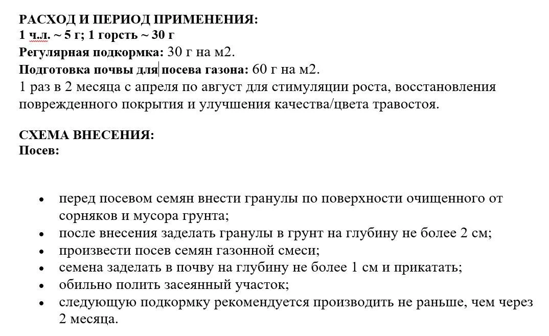 Подойдет для подкормки на частных участках, спортивных полях, парках и территории общественного пользования.