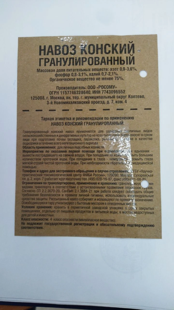 НОВИНКА на складе! Конский навоз в новой фасовке 1 кг.