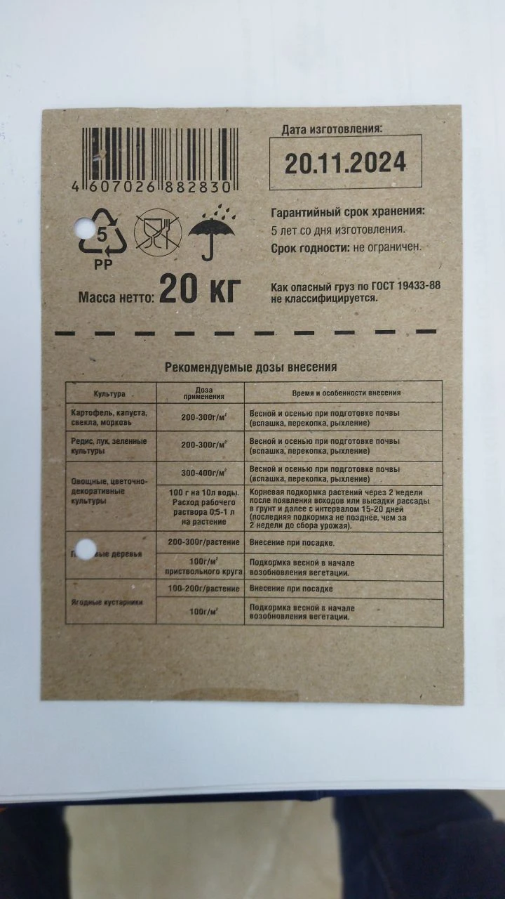 Массовая доля питательных веществ: азот 0,9-3,6%, фосфор 0,8-3,1%, калий 0,7-2,1%.