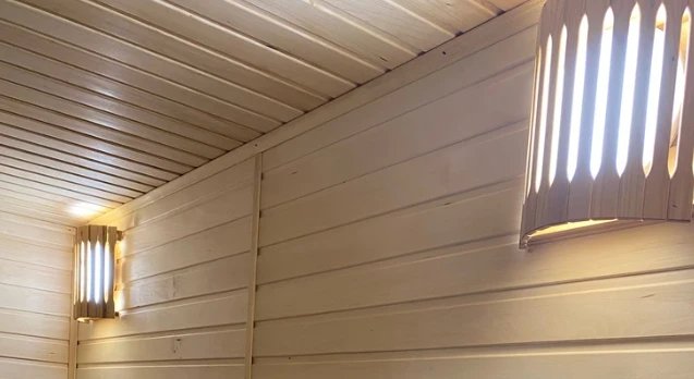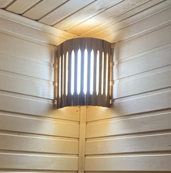 Для бань и саун применяются настенные и угловые светильники и абажуры. -