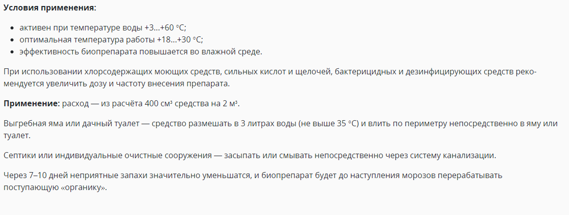 - устраняет неприятные запахи в дачных туалетах и выгребных ямах;