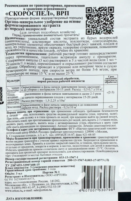 Ортон Скороспел – органоминеральное удобрение на основе морских водорослей.