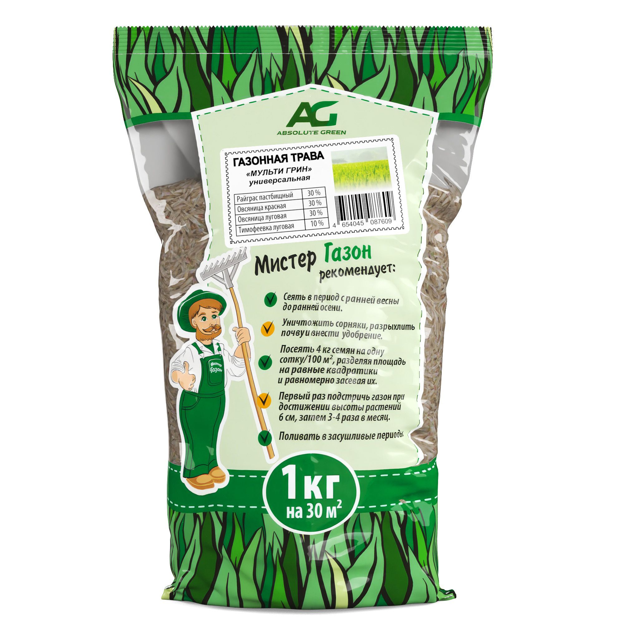 Газонная травосмесь Мульти Грин 1 кг 1/10 (АГ)
