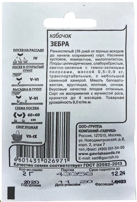 Количество товара в упаковке 20 ШтрихКод 4601431026971 Не в реестре Нет Срок созревания Ранний Торговая марка Гавриш -