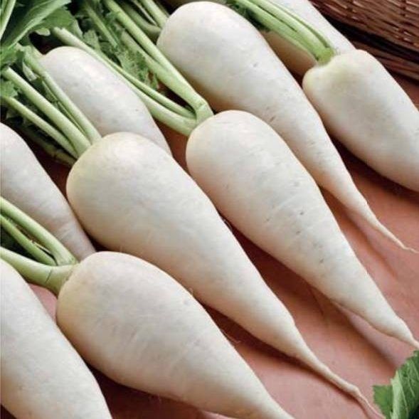 Корнеплод крупный, белый, конический, длиной до 20 см и диаметром около 6-10 см.