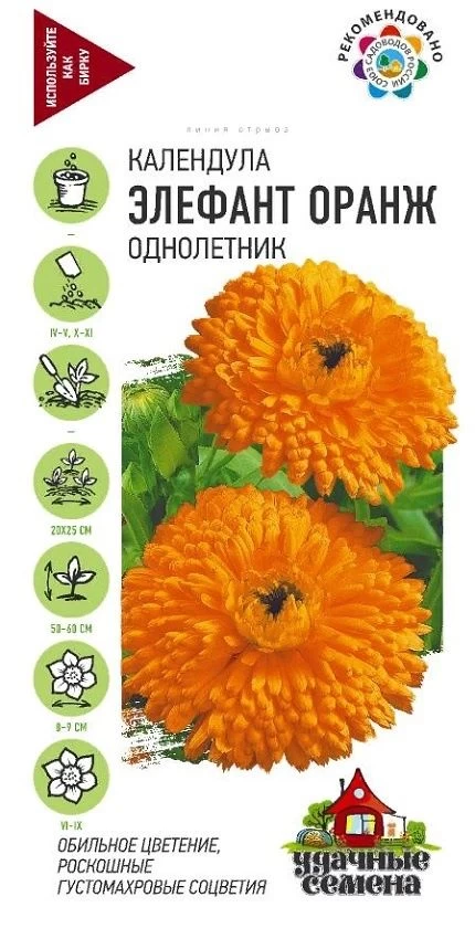 Календула Элефант Оранж серия Удачные семена (Гавриш) 1/500