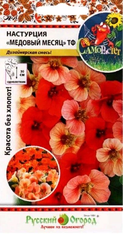 Настурция "Медовый месяц ТФ" – восхитительный экземпляр цветочной декоративной флоры, способный украсить собой любую, даже самую непримечательную местность, или серое помещение.