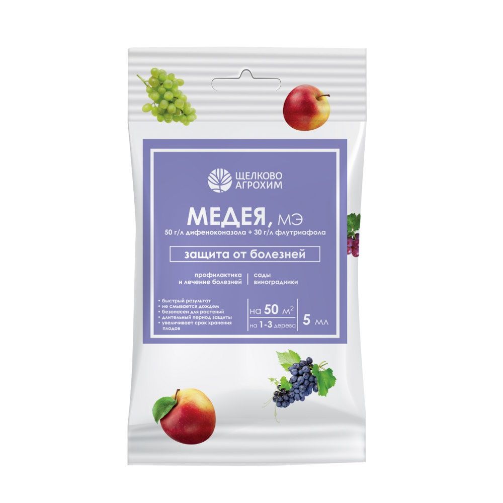 Препарат Медея применяется для лечения и профилактики плодово-ягодных культур от всех болезней (парша, пятнистость листьев, гниль плодов и др.)