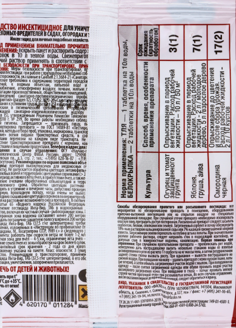 Инта-Вир водорастворимая таблетка – инсектицид для уничтожения насекомых вредителей в садах, огородах, теплицах.