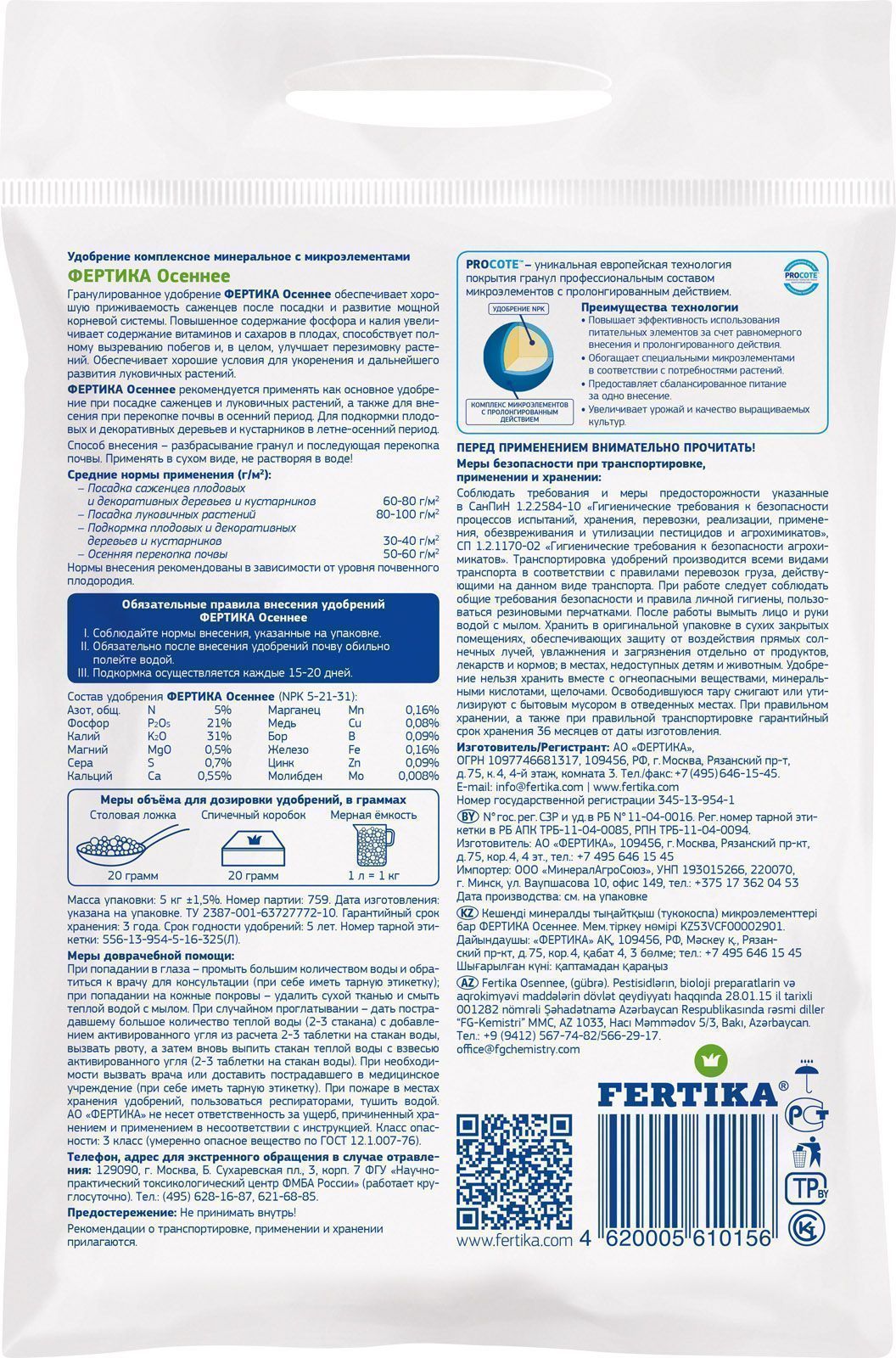 Содержит повышенное количество фосфора и калия, которые особенно необходимы растениям в осенний период.