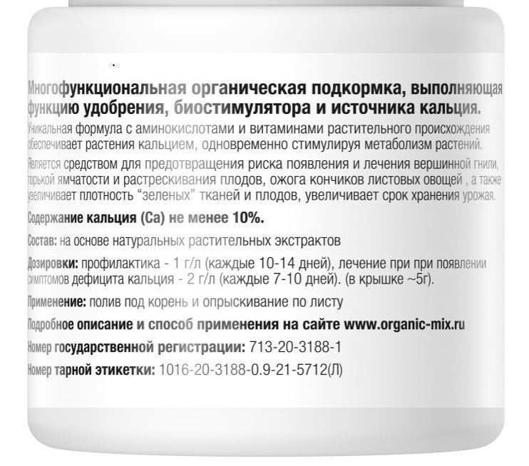 Многофункциональная органическая подкормка, выполняющая одновременно функцию удобрения, биостимулятора и источника кальция.