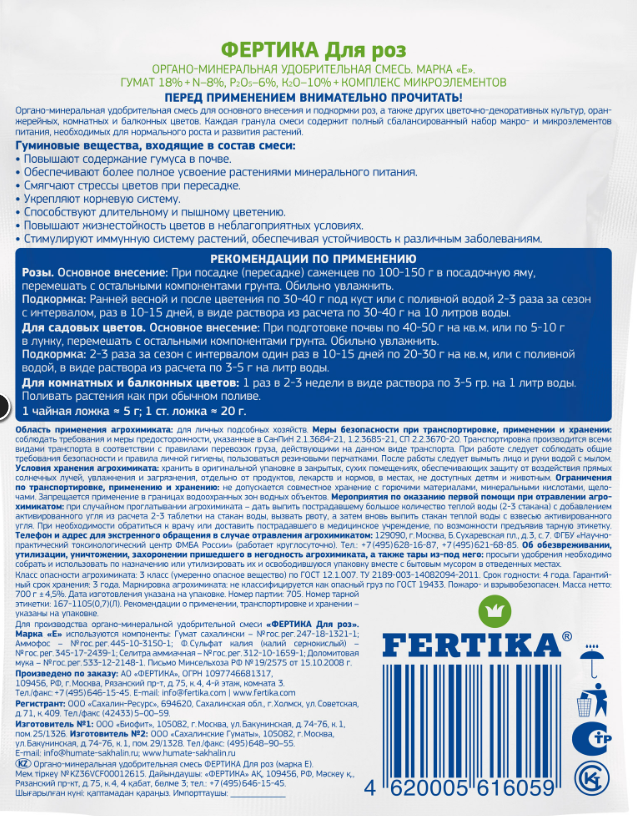 Для основного внесения и подкормки роз,