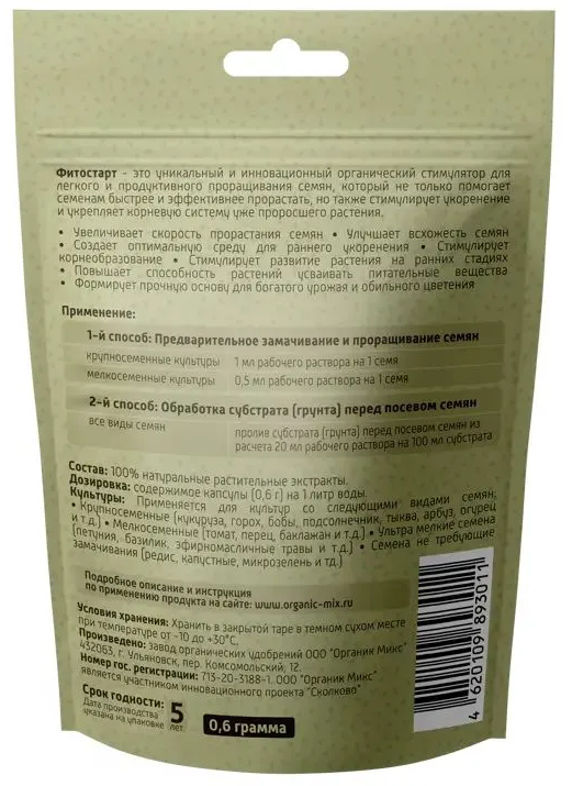 ОрганикМикс Фитостарт стимулятор для прорастания семян 0,6 гр 1/20 (Э/Ф)